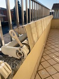 N.2 Tende mt 4 + 1 capottina x finestra singola mt. 3 con telaio portante usate per un po’ di anni, stato del tessuto non come nuovo.