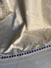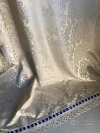 Due teli tende damascate color panna altezza 280 piu pizzo larghezza 120 con arricciatende