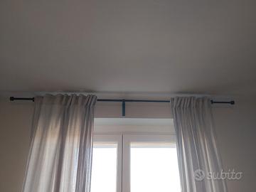 Vendo 3 coppie di tende e bastoni come in foto, il colore delle tende è sul grigio chiaro e sono lunghe circa 265cm, montate su portefinestre larghe 140 ma ovviamente sono più larghe, i bastoni si estendono da 120 a 210cm. Non spedisco