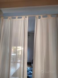 Vendo 3 tende bianche in poliestere non leggero misura 240x160 e due bastoni a pressione allungabili( non servono buchi) adatte sia ad interno che esterno per errato acquisto. sono nuove.