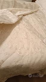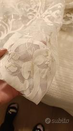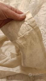 1 tenda doppia formata da telo di raso avorio e sotto tenda in velour con disegni che riprendono il colore del raso