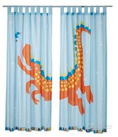 Vendo 2 tende Ikea 100% cotone con motivo di drago, colore azzurro, blu, arancione.