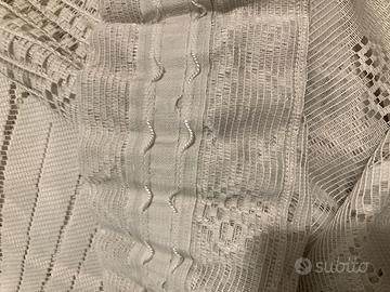 Vendo 2 tende in pizzo poliestere con fettuccia per arricciare ed infilare i ganci per appenderle, misure: altezza cm 278, larghezza cm 380.