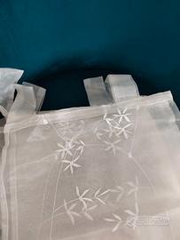 Quattro tende bianche, due più coprenti e due trasparenti, con ricami delicati. Si possono abbinare per sovrapposizione. Con passanti. Misura m 2,90. Prezzo 15 euro.