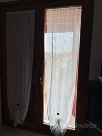 Vendo 4 tende in tessuto leggero e moderno, fantasia a cerchi. Le tende sono già pronte all’uso e vengono vendute complete di: •4 bacchette a molla (installazione senza forare muri o infissi) •4 calamite fermatenda Caratteristiche: •Altezza tenda: 240 cm •Larghezza: 57,5 cm (ciascuna) •Adatte per finestre circa 160 cm di altezza e 90 cm di larghezza •Colore chiaro, filtrano la luce mantenendo la privacy •Facili da montare e rimuovere Condizioni: Ottime condizioni, come da foto.