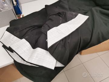 Tende oscuranti in tessuto ignifugo cm 230 x h 300 usate ma in ottime condizioni, complete di fascia e gancetti per l'installazione. Disponibili 2 pezzi, il prezzo si intende per singola tenda.