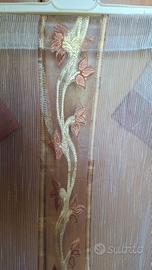 Coppia di tende in poliestere. Usate pochissime, in ottime condizioni. Colore beige, marrone chiaro, bianco con due bande marrone scuro sui lati. Disegno centrale con foglie e rami. Misure: 60x230 cm circa. Vendibili unicamente in coppia. Prezzo trattabile, e inteso per la coppia