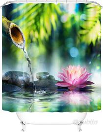 OCEUMACO Tenda Doccia Antimuffa Zen Tenda per Doccia in Tessuto Poliestere 3D Bamboo Fiori Tende Doccia Angolare Impermeabile 120x180 cm Tenda Vasca da Bagno Lavabile - Verde Rosa. n.2