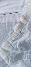 Tenda in cotone pregiato colore bianco, ricamo giglio ad intaglio, lavabile in lavatrice sui delicati. Misure cm 180xh255.