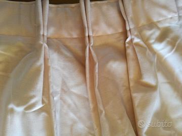 Nr. 2 tende, causa inutilizzo, in tessuto Trevira colore come da foto, dimensioni 93 cm dove ci sono i ganci, 157 cm lunghezza e 207 cm larghezza alla base. Ritiro solo presso mio domicilio.