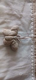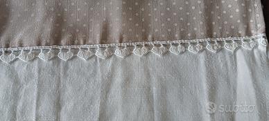 3 tende portafinestra panna con fascia superiore ecru con pois bianchi e passamaneria a cuori di definizione misure 90 x 240
