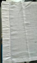 Due tende in misto cotone lino realizzate a mano con orlo a giorno tutto intorno e 3 ricami verticali centrali. Misure: altezza cm154, larghezza cm48. Si possono appendere con la classica bacchetta o applicare il velcro. Molto belle ed eleganti