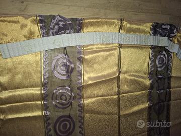 Tende da interno color oro e viola, misure: larghezza 135, lunghezza 275. Complete di anelli e a scelta il bastone color bianco. 2 teli a 30€, con bastone 50€.