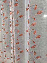 Coppia tende moderne colore bianco trasparenti con occhielli, molto luminose. Misure di ogni pannello cm 140 x 290. Foglia color arancione ricamata.