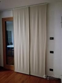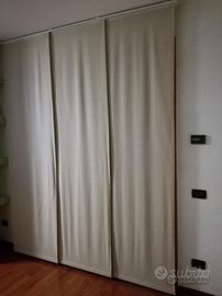 Vendo tenda dotata di una struttura da appendere sul soffitto lunga 210 cm su cui ci scorrono 3 tende, leggermente sormontate, larghe 72 cm per un'altezza di 265 cm, con la più esterna che "tira" anche le altre. Facili da lavare e stirare. Colore beige, in ottime condizione, vendo per trasferimento.