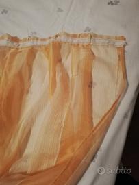 Vendo tende color salmone (nella foto sembrano più gialle) Ci sono due tendoni Larghezza cm 82 X 252 altezza Tre tendine da portafinestra Larghezza cm 44 X 238 altezza Hanno un motivo a righe