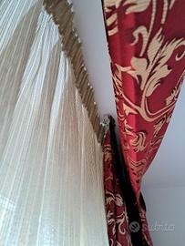 tenda colore oro con calate laterali e mantovana colore oro e bordeaux compresa di zineffe, ideale per vetrata da cm.300.