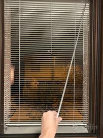 Vendo Veneziane in alluminio per ripararsi dal sole sia da interno che da esterno lamella di 25 mm. Ideale sia per casa che per ufficio. Caratteristiche come in foto, misura larghezza 99 cm altezza 144 cm, colore bianco sporco, con azionamento con cordoncino e asta effetto cristallo, altezza di azionamento 130 cm lato dx e guida laterale con cavo antivento, montaggio a soffitto con elementi di fissaggio in dotazione.