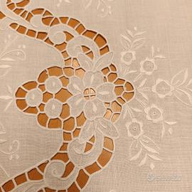 tendina e/o asciugamano in lino bianco ricamata p.festone e intagliata misure 73x108