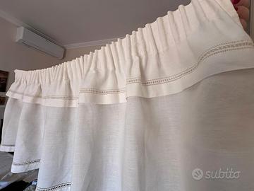 Tenda completa di mantovana per finestra bagno o cucina ad unica anta. Interamente cucita e ricamata a mano 100%lino si vende perché in fase di ristrutturazione sotto la finestra del bagno abbiamo collocato la doccia.