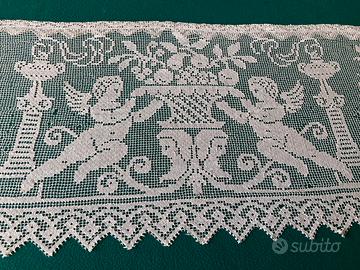 Preziosa tendina ricamata a filet larga 1 metro alta 45 cm