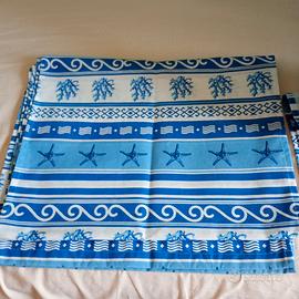 N.4 tendine a vetro in cotone, tessuto pesante non trasparente, misure cm. 45 x 150.colori bianco e azzurro con fantasie che ricordano il mare. Usate pochissimo, in ottimo stato.