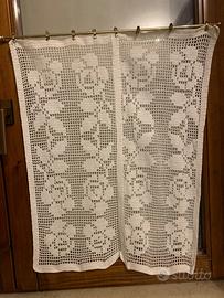 Coppia tende bianche uncinetto rose