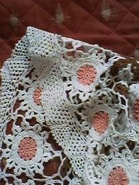 traforata e lavorata con motivi geometrici-floreali in 4 colori : bianco (base), giallo pallido, salmone, marrone.
