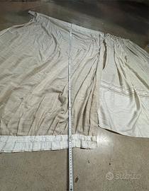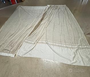 Vendo coppia tendoni colore bianco/beige eleganti, tessuto raffinato e dalla trama fitta, usate ma in perfette condizioni. Misure: altezza cm. 305 - larghezza minima all’aggancio al soffito cm. 90 - larghezza massima al suolo cm. 215. Senza buchi, fili tirati o macchie, agganci in plastica ovviamente da adattare a carrelli o bastoni. Preferibile ritiro o consegna diretta. Eventuali spese di spedizione a carico dell’acquirente. No perditempo. Disponibile per visionare materiale e qualita del prodotto. Prezzo esposto per la coppia di tende.