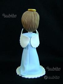 Angelo con ali bianche sguardo tenero, sono ideale per decorare la torta, o come ricordo per battesimo, prima comunione, è fatto completamente a mano di porcellana fredda(pasta di mais).