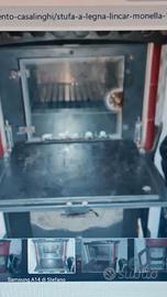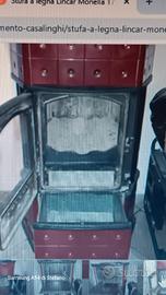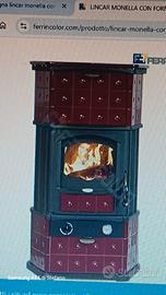 Termo stufa in ghisa con forno rivestimento in ceramica rossa completa di tubería termostato ecc...