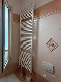 Bianco, funzionamento con allacciamento all'impianto di riscaldamento ad acqua calda. Le misure sono: largo 60cm e alto 178cm. La distanza interasse 57cm perfettamente funzionante. Prezzo leggermente trattabile