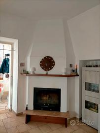corredato di attrezzature caminetto e cesto legna in ferro battuto