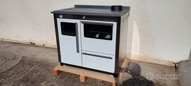 si collega all'impianto dei termosifoni e riscalda tutta la vostra abitazione , immaginate la pentola sul fuoco , un buon piatto che cuoce in forno , potrete ammirare fiamme danzanti che allieteranno le vostre serate , mentre i vostri termosifoni saranno molto caldi .. cosa volere di piû con qualche ceppo di legna .. questo é il vero risparmio ! chiamate pure per tutte le informazioni