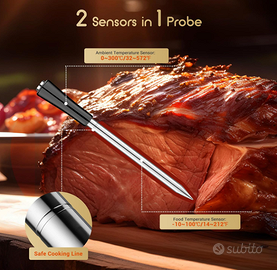 💥【Sonde con doppio sensore】Dotate di due rilevatori integrati, misurano simultaneamente la temperatura degli alimenti (-10~100 ℃) e dell'ambiente cottura (0~300 ℃) con precisione ±1 ℃. Importante: inserire sempre la sonda oltre la linea di sicurezza durante l'uso.