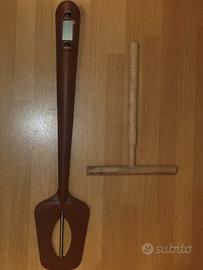 Termometro digitale a spatola in silicone NUOVO, ha ancora sigillo attivazione batteria. Regalo livella in legno per preparazione crepes.