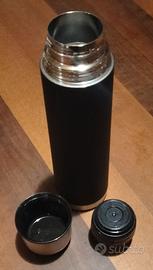 Termos termico marca Ernesto, per caffè e altre bevande calde e fredde, poco usato ma ancora in ottimo stato a parte una leggera ammaccatura sul fondo, senza cartellino, in acciao inox e polipropilene per sostanze alimentari, isolamento a doppia parete, tappo rimovibile a vite anti perdita con guarnizione in silicone.