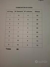 Vendo termosifoni in ghisa varie dimensioni come descritto nella tabella. Condizioni come da dettaglio foto. Il prezzo si intende per singolo elemento. No spedizione.