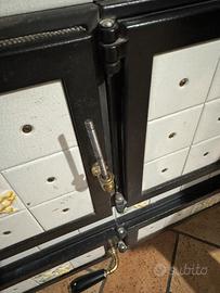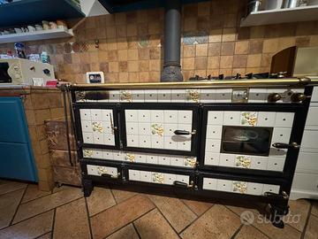 Termostufa Wercos piastrellata in ceramica, con due forni uno elettrico ed uno a legna, cucina a gas Foster, dimensione 140cmx65cm. Manca maniglia in ceramica per sportello d’apertura disponibile su richiesta a Wercos, ed piano interno cappa. Sono disponibili piastrelle di ricambio. Attualmente la stufa scalda una casa di mq 200. 3000€ trattabili. Non viene effettuata spedizione, le operazioni di carico e trasporto della stufa, sono totalmente a carico dell’acquirente.