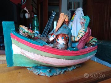 Terracotta di Angela Tripi artista Siciliana, barca pescatori cod. 3788120/'87. Misure 43x25x28 L.P.A. base legno con cappa plexiglass (opagizzata) Misure terracotta 30x20x18 L.P.A . Si presenta in buone condizioni . Preferirei ritiro di persona , non prendo responsabilità per eventuale spedizione.