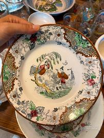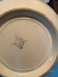 Terrina antica con rappresentazione centrale conese e due piatti abbinati. 50 intero set 35 terrina da sola 25 la coppia di piatti