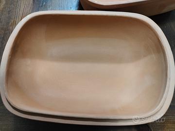 Terrina con coperchio in terracotta x cucinare " Al Mattone " della prestigiosa azienda Pasquinucci.Mai usata ! Misure larghezza cm.22 lunghezza cm.31 H cm.17 con coperchio, senza coperchio alta cm.9,5