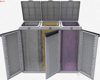 Informazioni su questo articolo Terry organizza il tuo spazio: azienda italiana riconosciuta per i suoi prodotti innovativi, dal design unico Caratteristiche: contenitori Terry Ecocab 3 in plastica. Dotato di tre ante apribili per posizionare il tuo sacco. Colore grigio con finiture in nero Pratico e funzionale: apertura pratica che permette di estrarre i sacchi facilmente. Può contenere fino 3 sacchi da 110 lt Pensato per: utile per la raccolta differenziata dei rifiuti. Pratico per chi ha problemi di spazio, può essere posizionato anche all'esterno in balconi e terrazzi Prodotto Ecofriendly: questo prodotto è realizzato per il 98% con plastica riciclata