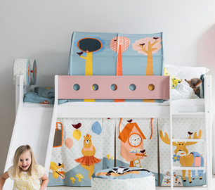 Le tende montate si vedono nell'ultima immagine a modo esemplificativo, si possono anche mettere nel letto a castello altezza 143. Usate ma tenute bene.