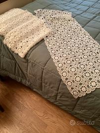 Tessuti in pizzo macramé color avorio per tendine, runner o centro copritavolo. Misure cm 109 lunghezza x cm 42 larghezza. Ritagliabili a misura inferiore. €20 ciascuno.