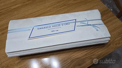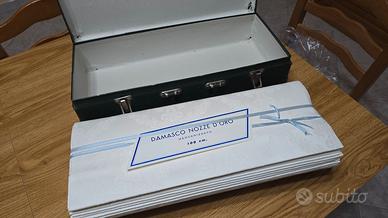Vendo rotolo originale di tessuto damascato mercerizzato “Nozze d’Oro”, perfettamente conservato nella sua valigetta originale.