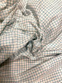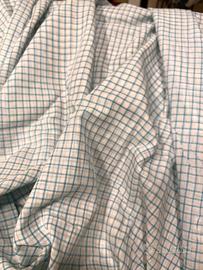Tessuto Designers Guild, per tenda, in puro cotone, con quadretto verde acqua che vira sull’azzurro. Si adatta sia per tende da salotto, che camera o cucina, essendo molto versatile. La misura dello scampolo è 129 cm di larghezza x 340 cm di lunghezza, per cui riesci a realizzare una tenda per portafinestra + una per finestra, o in alternativa più tende per finestra, e’ un tessuto che copre sufficientemente dalla luce, e protegge dall’introspezione, pur essendo capace di far filtrare la luce. Articolo nuovo, abbinabile ad altri tessuti Designers Guild tra cui un cotone e dei della stessa tinta. Il prezzo del tessuto al metro supera i 100€, per cui viene già venduto ad un ottimo prezzo scontato.