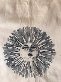 Piero Fornasetti (1933-1988) è stato pittore, scultore, decoratore d’interni, designer e scenografo.Conosciuto a livello internazionale ha collaborato con le personalità di rilievo del panorama artistico della sua epoca quali Gio Ponti e ha avuto una grande influenza nella cultura del design italiano.Materiale rasatello di cotone adatto a tappezzerie per rivestire sedie, schienali di mettitutto a giorno stile shabby,pouff o poggiapiedi o agrippina.Made in Italy Misure altezza cm.140 lunghezza cm.110 Scampolo nuovo con cartellino Spedisco piegato