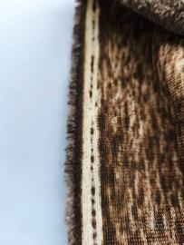 Tessuto in pelliccia sintetica, pelo corto, alta densita' morbida, elasticizata in larghezza. Colore marrone melange.