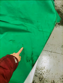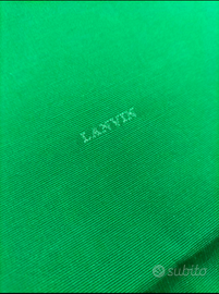 Tessuto Lanvin in poliestere verde con misure 2 x 1,55 m. Il tessuto è sporco come da foto e necessita di un lavaggio professionale.